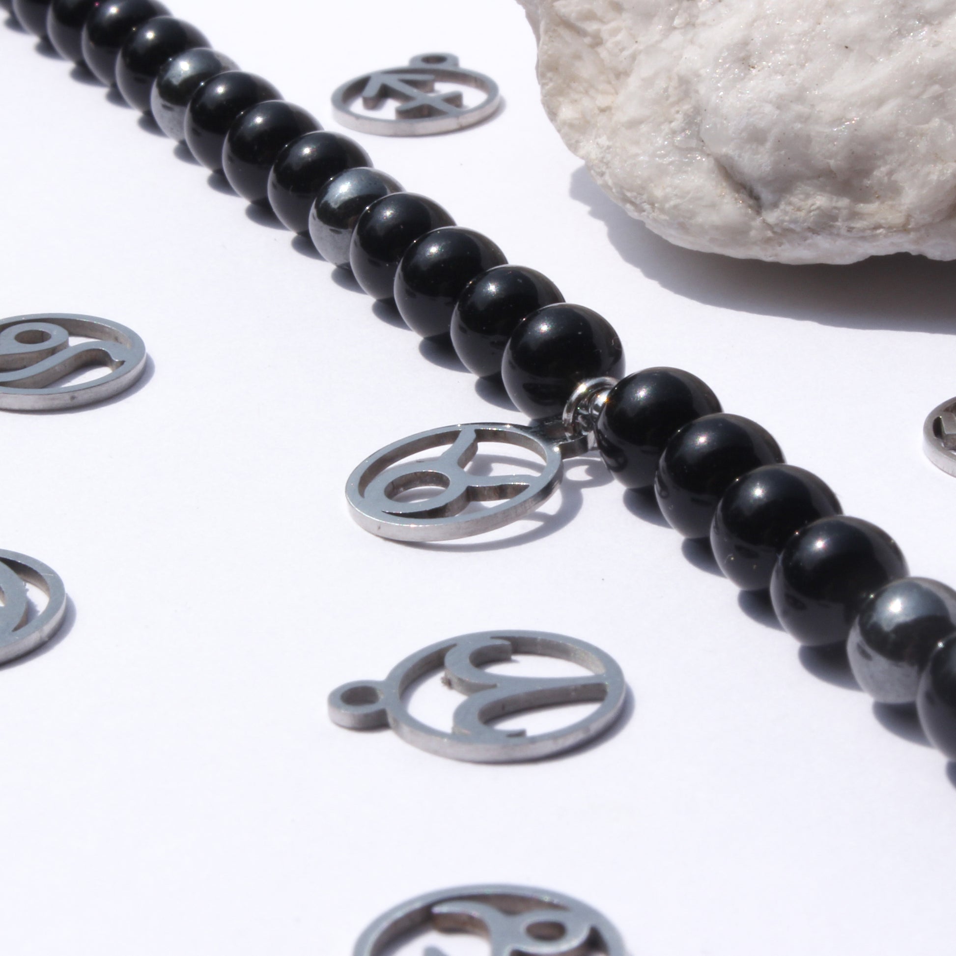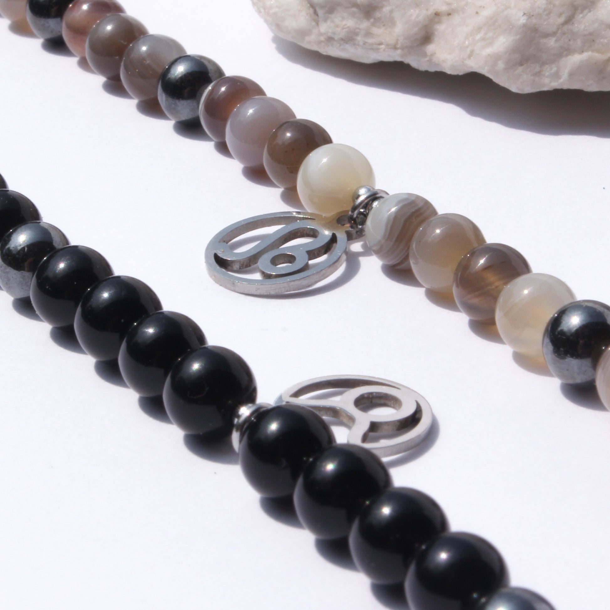 Bracelet artisanal en pierre semi-précieuse et finitions en acier inoxydable.