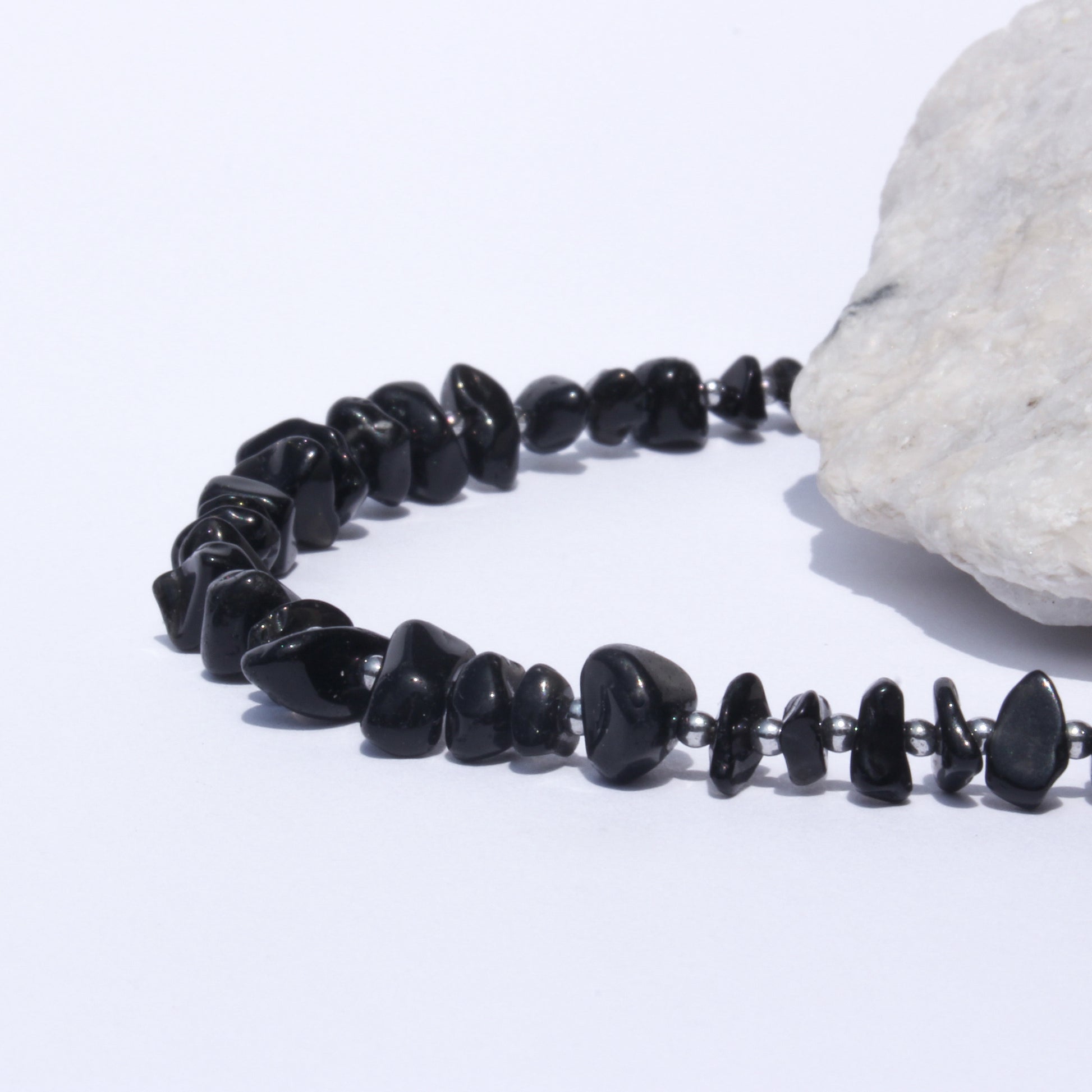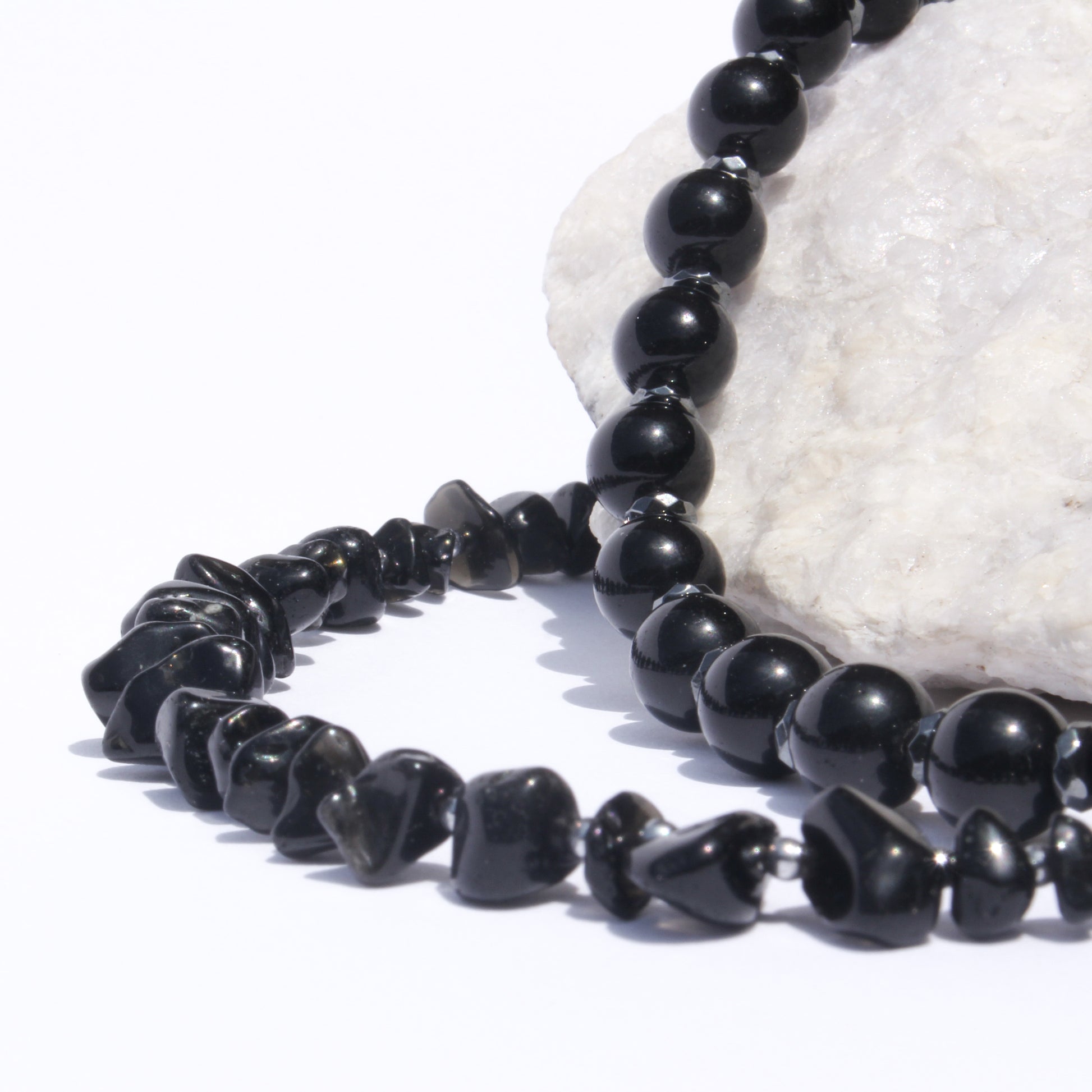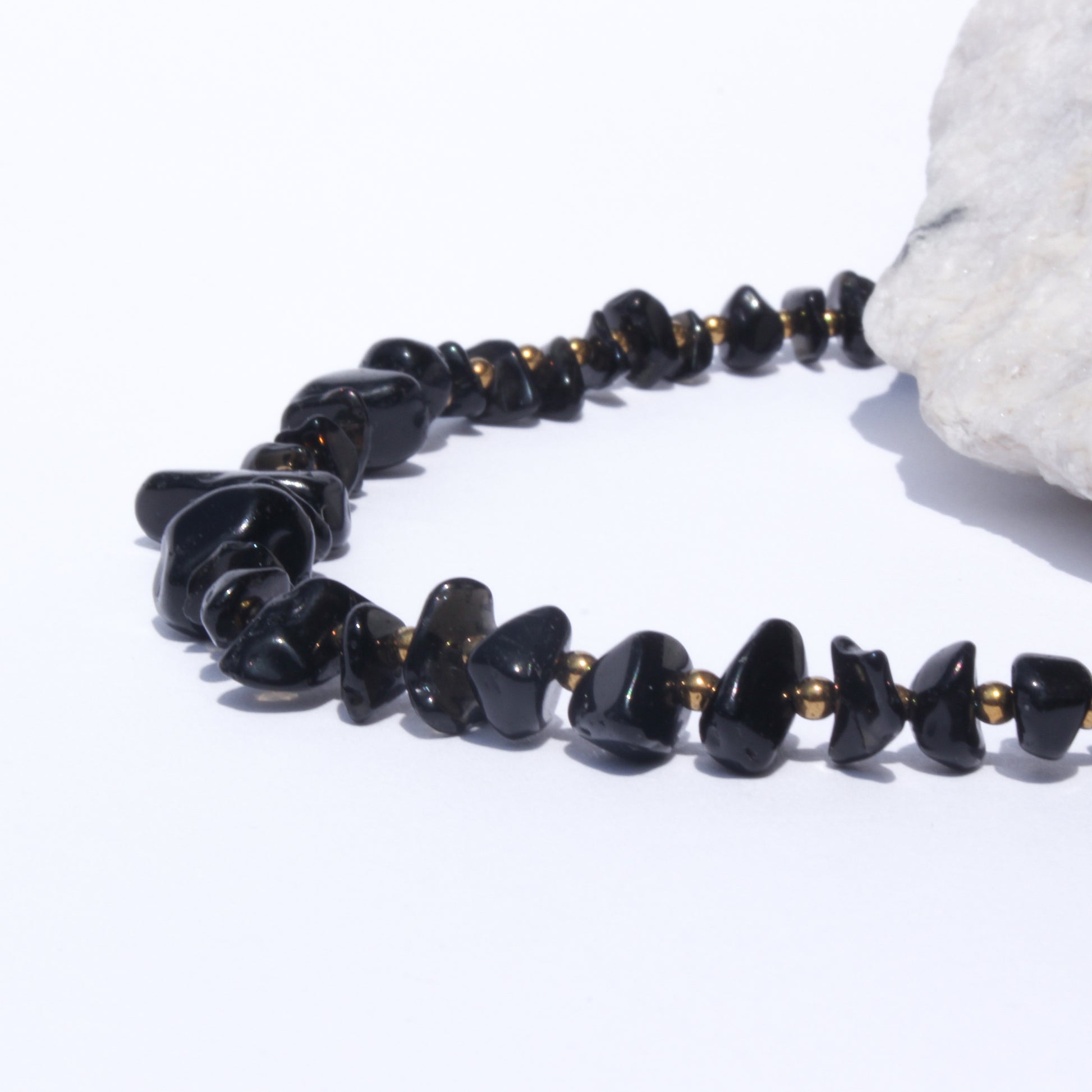 Collier en acier inoxydable 40 + 6cm ajustable. Pierre Noire.